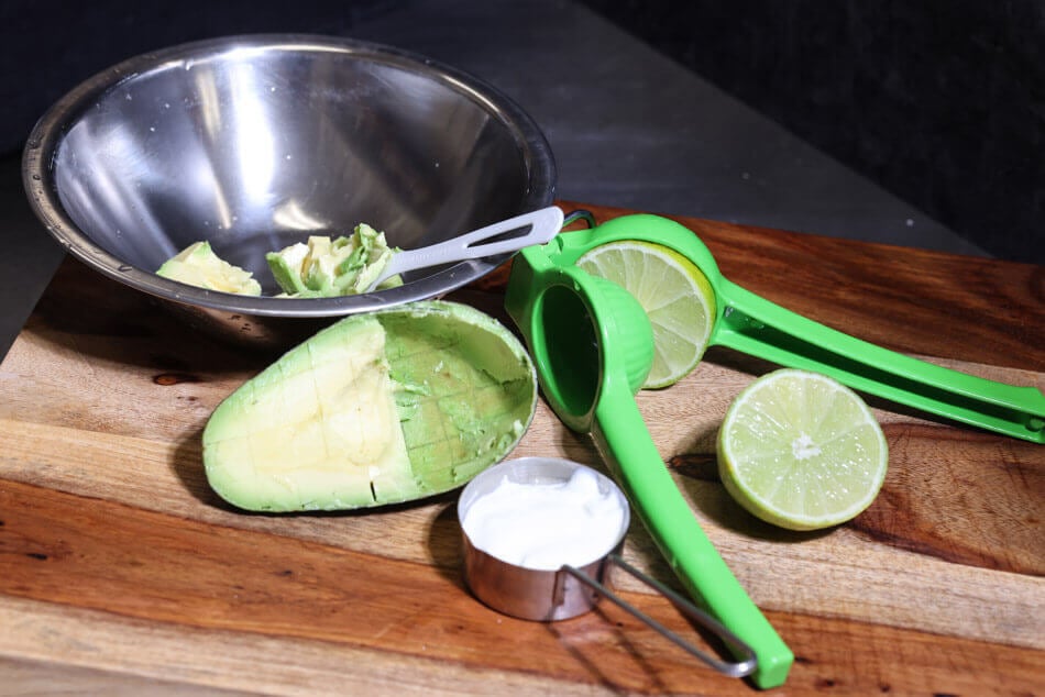 Place all of the ingredients for the crema in a small bowl and whisk to combine. Set aside.
