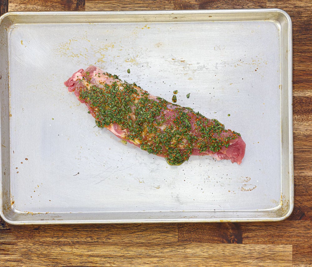 Rub the mixture all over the pork loin. The thicker the pork loin the more you need since it has to penetrate the rub deeper.
